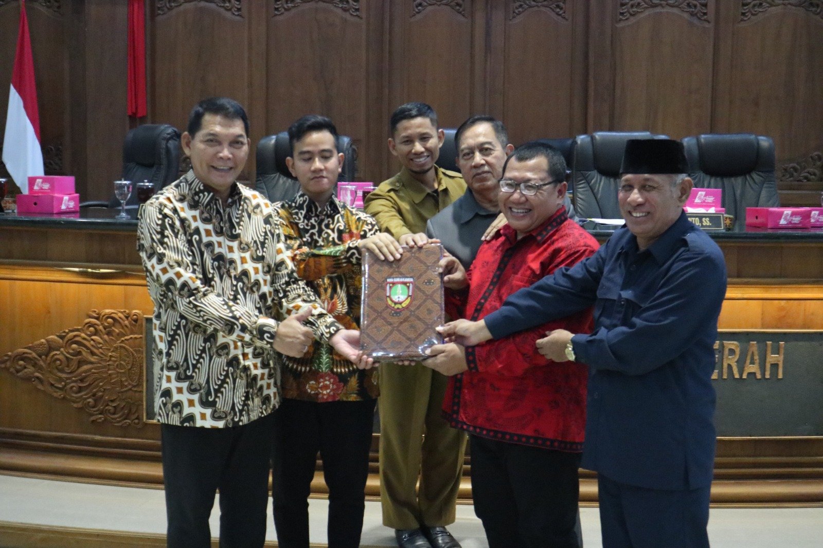 Naskah persetujuan raperda tersebut ditandatangani Wali Kota Gibran Rakabuming Raka, bersama empat Pimpinan DPRD, Budi Prasetyo, S.Sos., M.A.P, H. Sugeng Riyanto, S.S, Drs. Achmad Sapari, M.M dan Drs. Taufiqurahman.
