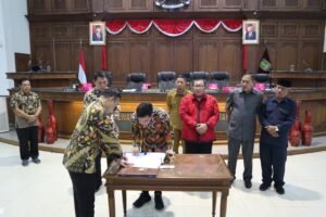 HUMAS DPRD KOTA SURAKARTA – Setelah melalui dinamika dalam pembahasan, Dewan Perwakilan Rakyat Daerah (DPRD) Kota Surakarta akhirnya menyetujui rancangan peraturan daerah (Raperda) tentang perubahan atas peraturan daerah (Perda) Kota Surakarta Nomor 8 Tahun 2021 tentang Pembentukan dan Susunan Perangkat Daerah. Selain raperda Perubahan Perda Nomor 8 Tahun 2021, DPRD juga menyetujui raperda tentang penyelenggaraan Perumahan dan Kawasan Permukiman (PKP).