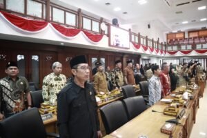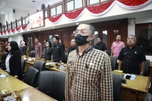 HUMAS DPRD KOTA SURAKARTA – Wakil Wali Kota Surakarta, Teguh Prakosa menyampaikan pengantar nota keuangan Wali Kota Surakarta atas rancangan peraturan daerah tentang Pertanggungjawaban Pelaksanaan Anggaran Pendapatan dan Belanja Daerah (P2APBD) Kota Surakarta TA 2022 di DPRD Kota Surakarta.