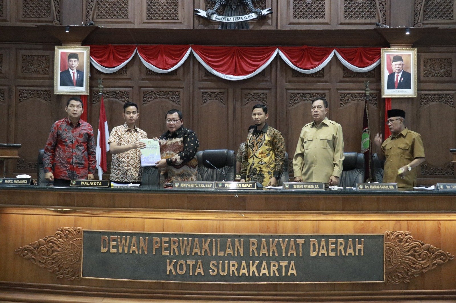 HUMAS DPRD KOTA SURAKARTA – Wali Kota Surakarta Gibran Rakabuming Raka secara resmi menyampaikan nota pengantar Laporan Keterangan Pertanggungjawaban (LKPJ) Wali Kota Surakarta Tahun Anggaran (TA) 2022. Nota pengantar setebal delapan halaman itu dibacakan Gibran pada Rapat Paripurna DPRD Kota Surakarta di ruang Graha Paripurna, Rabu (29/3/2023).