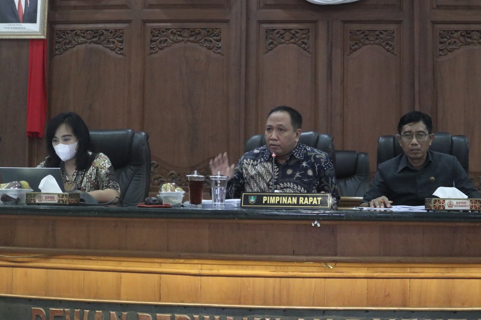 “Tapi untuk Instansi Pemerintah dan Swasta, seluruh pegawainnya setiap jam 10 pagi berdiri tegak dengan sikap sempurna mendengarkan lagu Indonesia Raya,”Kata Ekya ketika memimpin rapat pansus raperda internalisasi nilai Pancasila di ruang graha paripurna, DPRD Kota Surakarta, Selasa (28/2/2023).