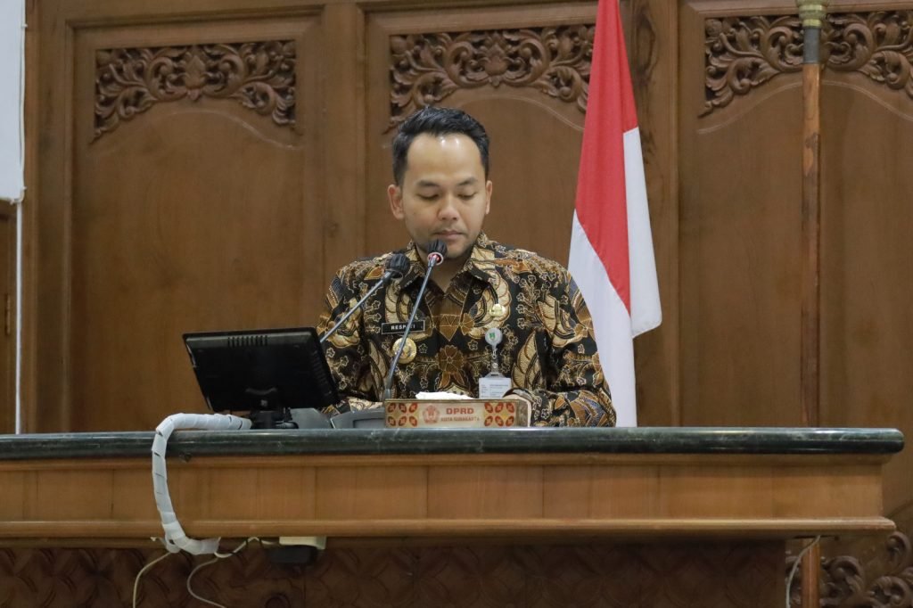 SURAKARTA – Wali Kota Surakarta, Respati Achmad Ardianto, secara langsung membacakan Nota Penjelasan Laporan Keterangan Pertanggungjawaban (LKPJ) Wali Kota Tahun Anggaran 2024 dalam Rapat Paripurna DPRD Kota Surakarta yang digelar di Gedung Graha Paripurna, Rabu (26/3).